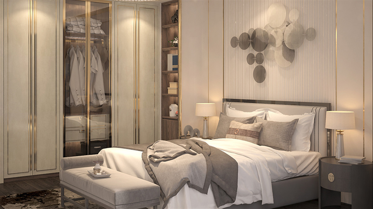 The super crystal panels create a bright and clean bedroom environment. The light and luxurious master bedroom renders the rhythm of luxury and elegance. Everywhere is exquisite and elegant, and every 1 square meter is cozy!