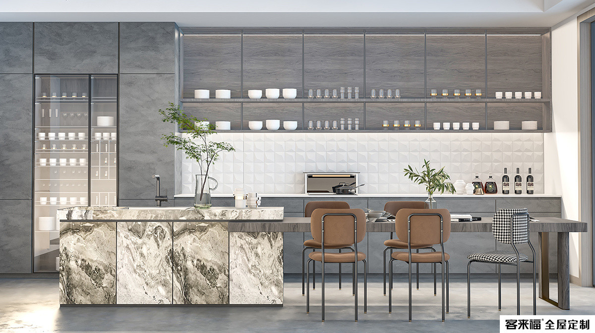 The kitchen part of the mid-summer series. It has a simple open design, which is both practical and beautiful, generous and elegant. More storage design makes the heavy kitchen look more concise.