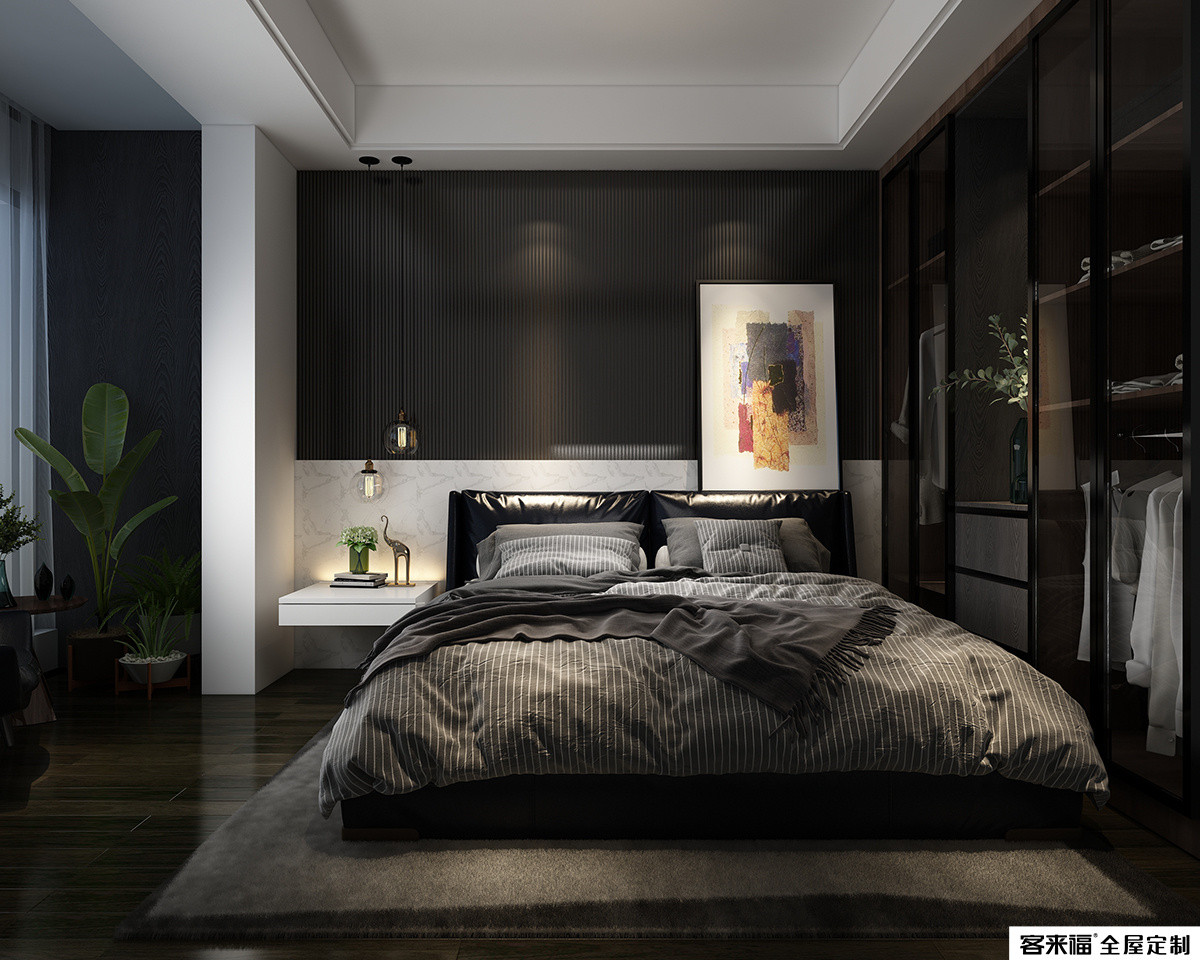 Technological wood grain, soft colors, delicate and moist texture, large areas of color are used in the bedroom space, creating a calm and quiet meaning. The embellishment of decorative paintings breaks the dullness of monochrome, and the warmth of home emerges spontaneously.