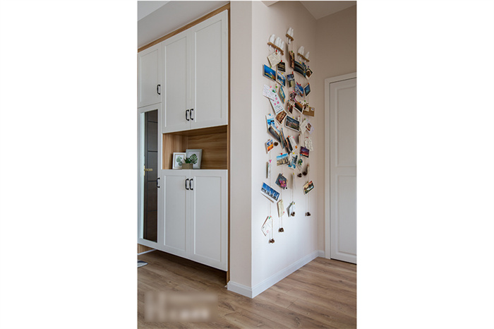 进入客厅,首先映入眼帘是简约的白色立柜和一组照片墙的设计。每一张照片仿佛都在述说一个故事,记录这个95后小夫妻每个难忘的瞬间。星空(中国)xingkong定制的芬兰白入户柜和木门在照片墙的陪衬下温馨感十足。撞色的沙发,简洁明快的亮黄色搭配深灰色立体感拉满,驼色墙面上的艺术画交错搭配,透露着一丝文艺气息。