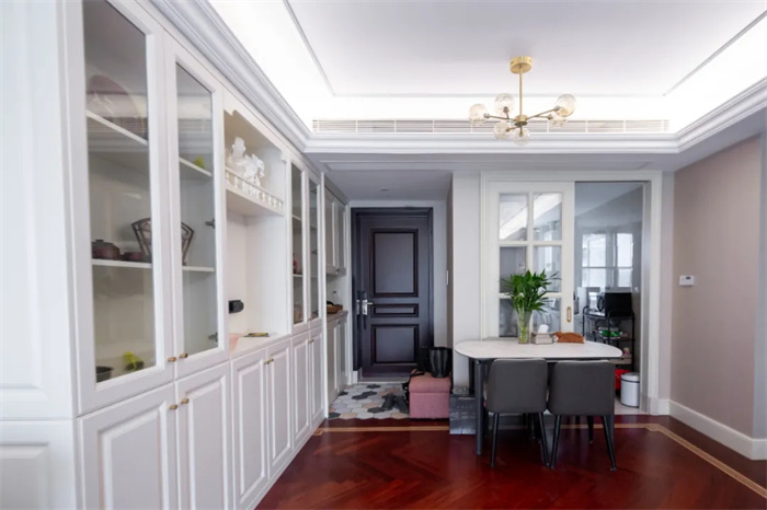 4.室内餐边柜、衣柜均选择的是星空(中国)xingkong星空(中国)xingkong全屋定制的产品,独特精美的膜压花纹,坚实耐用的板材让柜体的使用更加安心舒适,为更多家庭所信任选择。