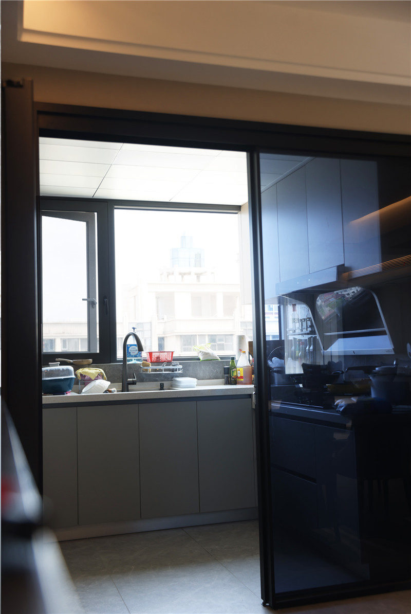 无拉手设计、高低台面、挡水条等,该厨房设计遵从着实用、简洁理念,打造幸福美好生活。
