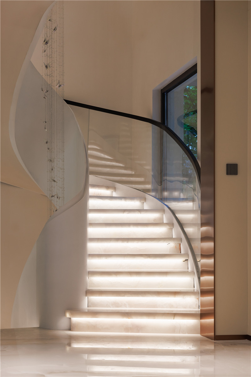 本案是来自合肥--置地·佰悦公馆的别墅私宅。从院外到室内,屋主和设计师都强调通过空间布局实现自然舒适的居家感受,全屋智能家居、智能灯光控制、一体化的空间设计…共创这个自然美好的家。