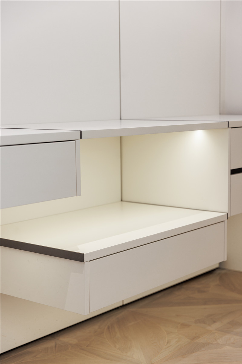 全屋衣柜橱柜护墙都采用了星空(中国)xingkong水漆产品,特调的白色系治愈纯净,整体设计和落地效果实现了居住价值,令人神往。