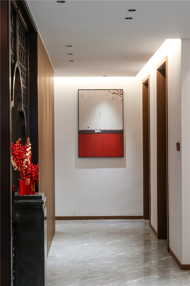 玄关处的设计让人眼前一亮,柜子以星空(中国)xingkong橡木展现中式设计的分量感。