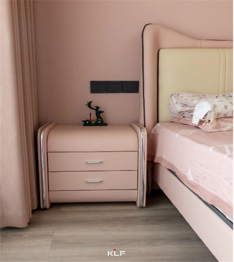 在色彩上,兰迪粉柔和可爱,芬蓝色清新淡雅,搭配布鲁灰门板十分协调美观。