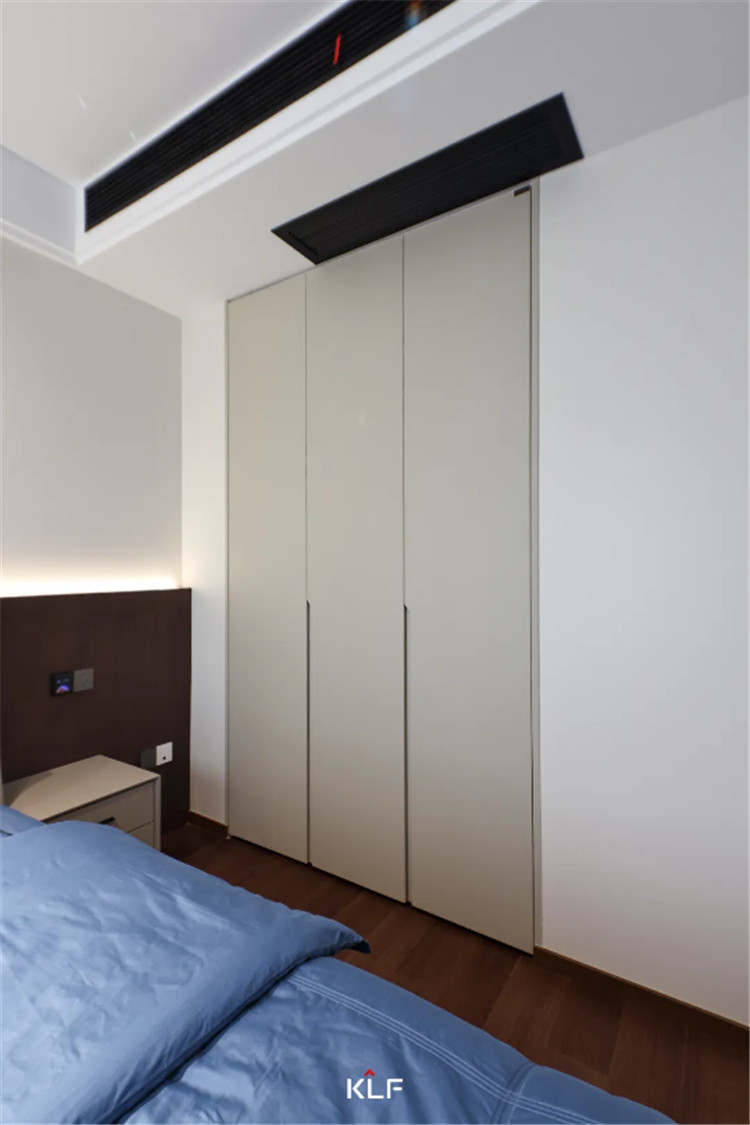 内嵌灯带既能营造墙面层次感又满足基础照明,高级又美观,柜体细腻的纹理彰显质感。
