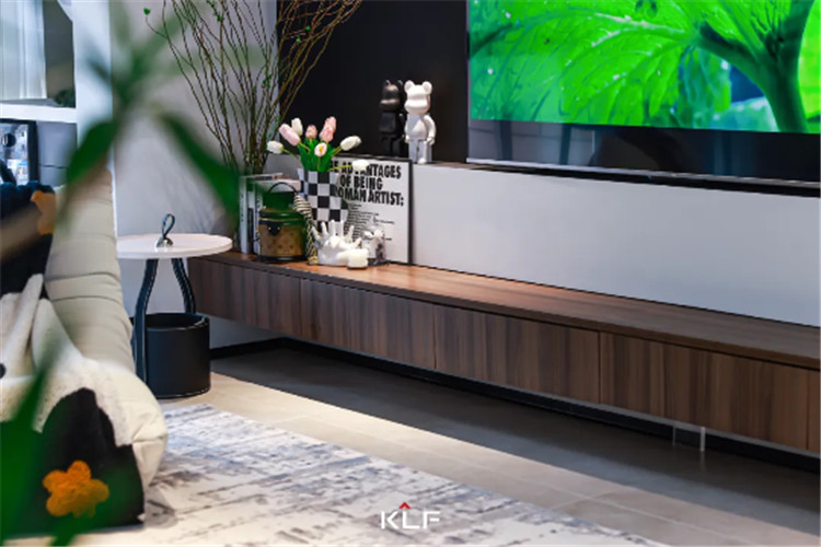 想要打造呼吸感十足的客厅,可以不做整面电视柜,以悬浮电视柜承担起客厅收纳功能更符合慵懒、松弛的家居氛围。烟熏橡木色内敛沉稳,木作纹理间带来岁月沉淀后的艺术气息。