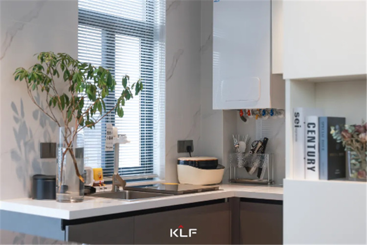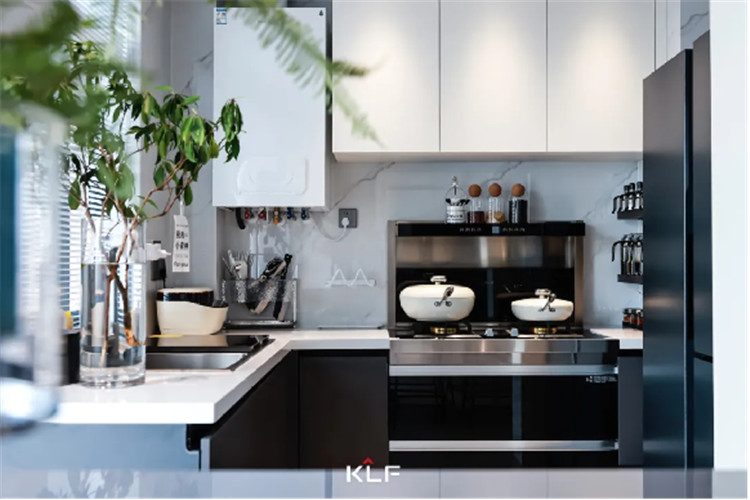 简单利落的要求同样运用在开放式餐厨空间中。利用好转角空间打造U型厨房布局,是黄金动线,更是美味人生的刻不容缓。