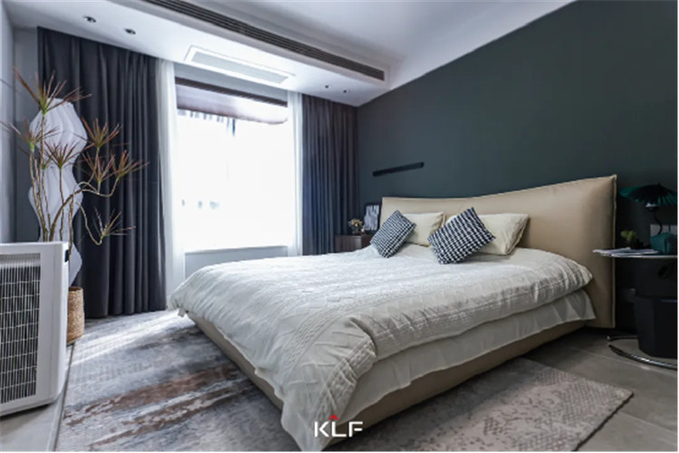 在主卧空间中没有加以过多的设计,简单的收纳型衣柜+柔软大床就是这个房间的主角,布鲁灰衣柜朴素淡雅,收纳能力却是满分。