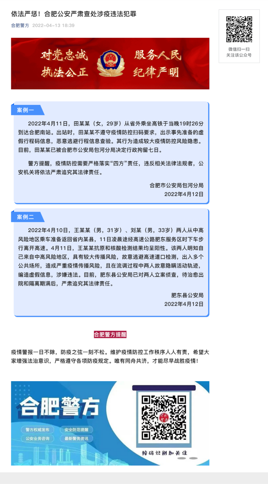 依法严惩!合肥公安严肃查处涉疫违法犯罪