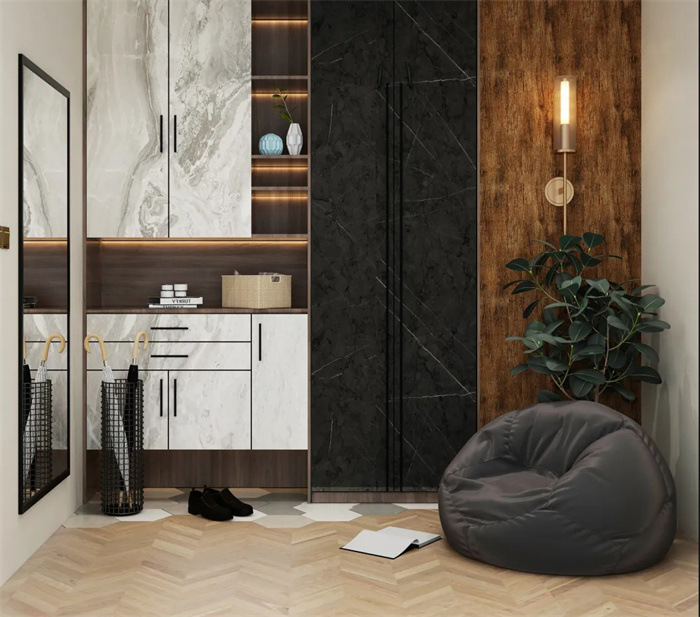 贴心设计从打开家门的那刻开始,结合玄关打造一个换鞋凳,便于进出门脱换鞋,避免因站立弯腰换鞋发生磕碰、摔倒等情况。