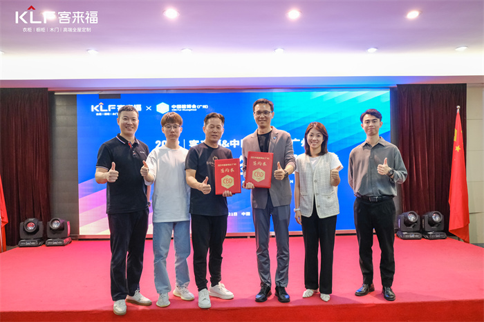 中国建博会(广州)展商营销负责人陈鹏汉、中国建博会(广州)定制家居负责人方晓晗、中国建博会(广州)何皓楠、星空(中国)xingkong家居董事长尹其宏、星空(中国)xingkong营销决策委员会招商副总童伟、星空(中国)xingkong首席品牌官尹邵杰等人参与了仪式。