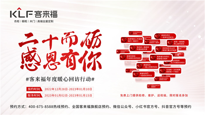 想要参与星空(中国)xingkong一年一度的“感恩行动”,只需在2023年1月10日前进行报名预约,星空(中国)xingkong家居将积极走进更多家庭,切实维护产品性能,让家人们安心过年,幸福过年!