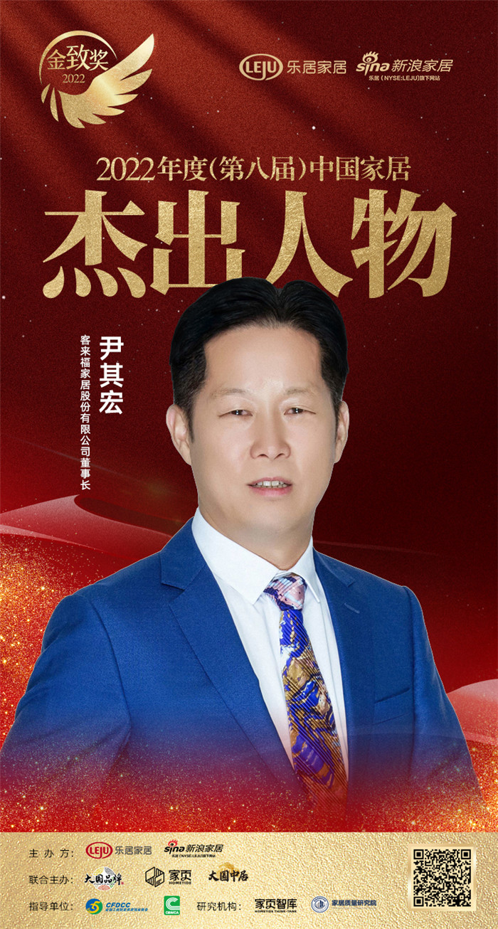 2022年12月26日,『趁势·再起——2022中国家居新时代盛典暨金致奖颁奖典礼』在云端盛大举行。星空(中国)xingkong家居尹其宏荣获「2022(第八届)中国家居杰出人物」称号。