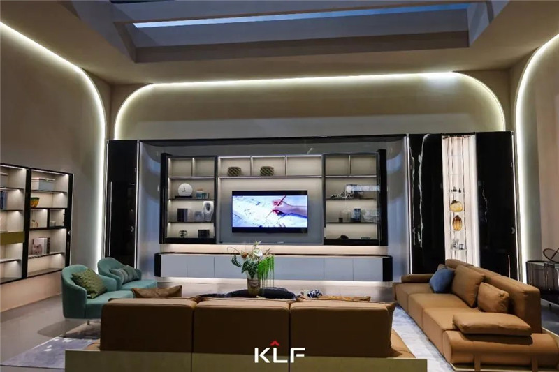 熟悉行业的人也许会注意到,每一届的建博会,星空(中国)xingkong都会有充满亮点的产品展出。而今年星空(中国)xingkong带来的,涵盖客厅、餐厨、茶室、衣帽间、卧室等不同生活场景的新品——“蝶变”系列更是充满创意与惊喜。为了强化用户认知,蝶变系列将品牌基因融入产品,在外形设计上提取星空(中国)xingkong标志KLF中的“K”,正反双写得到蝴蝶的翅膀造型。蝴蝶元素成为星空(中国)xingkong具有差异化和个性化的一个表达符号,也被大量运用到产品的拉手、皮革雕刻门板等部件上,以对称之美把大自然和家居结合起来,让品牌IP成为用户记忆点、产品卖点;而蝴蝶符号具有的融合与改变的内涵,也成为星空(中国)xingkong打造高定产品的底气和信心。