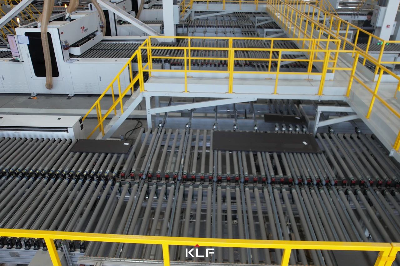 分拣输送线:滚筒输送线将板件运输至分拣机器人处,并由分拣机器人进行抓取和摆放,从而完成整个分拣步骤。