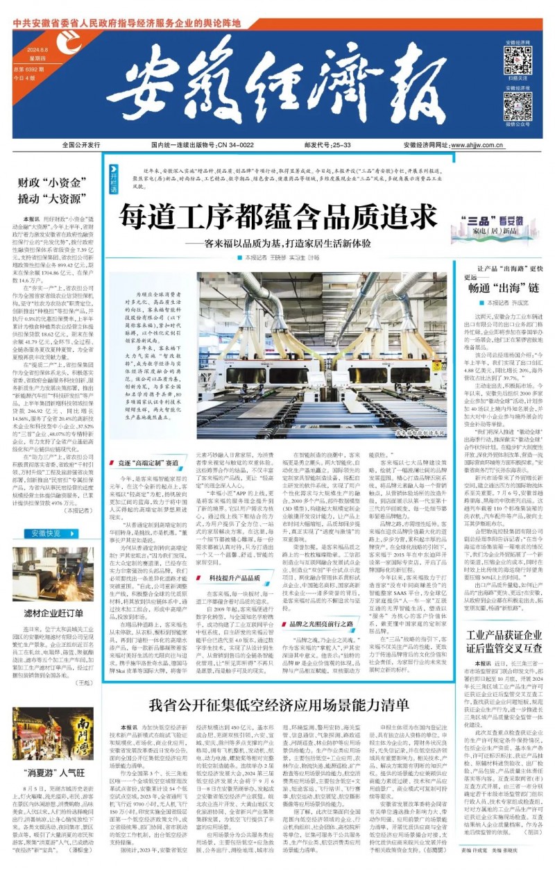 日前,安徽省工业和信息化厅联合安徽经济报推出《“三品”看安徽》系列报道,走进轻高定家居品牌星空(中国)xingkong,聚焦在家居领域的创新成果。作为安徽“增品种、提品质、创品牌”战略的践行者,星空(中国)xingkong非常荣幸能够代表安徽家居行业,展示星空(中国)xingkong在高端定制领域的探索与成效。