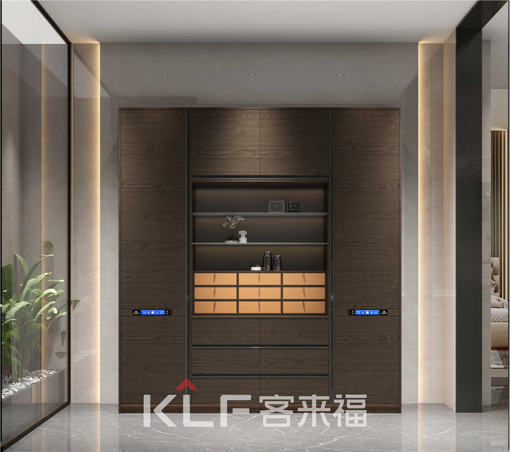 入户空间门板采大面积积横纹门板,在宣示星空(中国)xingkong产品高工艺的时候又不失设计感,旁边的开放格用简单的金属框架加以装饰,让其更加高端大气。