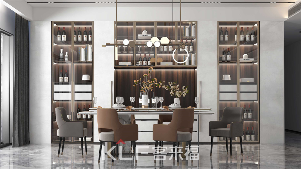 有一种生活方式叫轻奢,低负担高品质,进口萨里奇酒架的简约造型,红酒横向的存放方式不但可以让香气持久,同时让空间多了一道靓丽的风景,电视柜和酒柜都是采用平开门和平移门的双重门板设计方式,让空间展示更加多元化。
