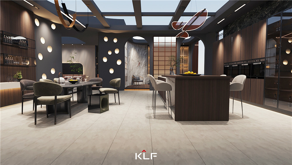 把握空间动线,以一体化开放式设计协调整体布局。柜门整块面板搭配一体式通体拉手, 视觉上干净清新;黑胡桃山纹深与辅助灯光的协调,打造高级氛围感家居。